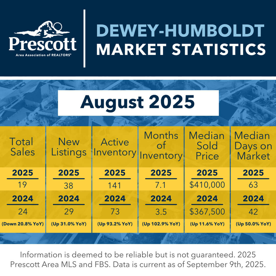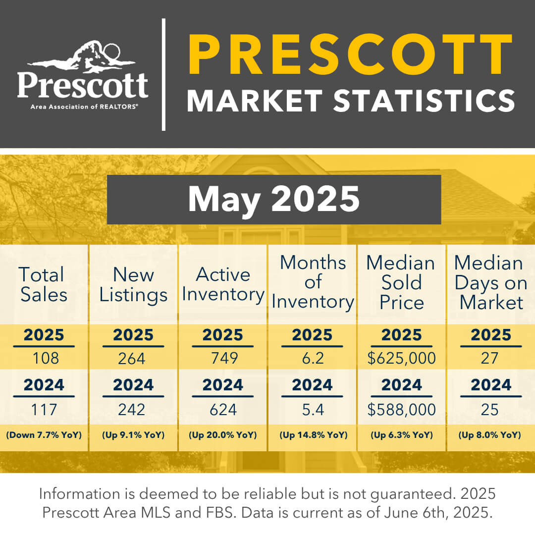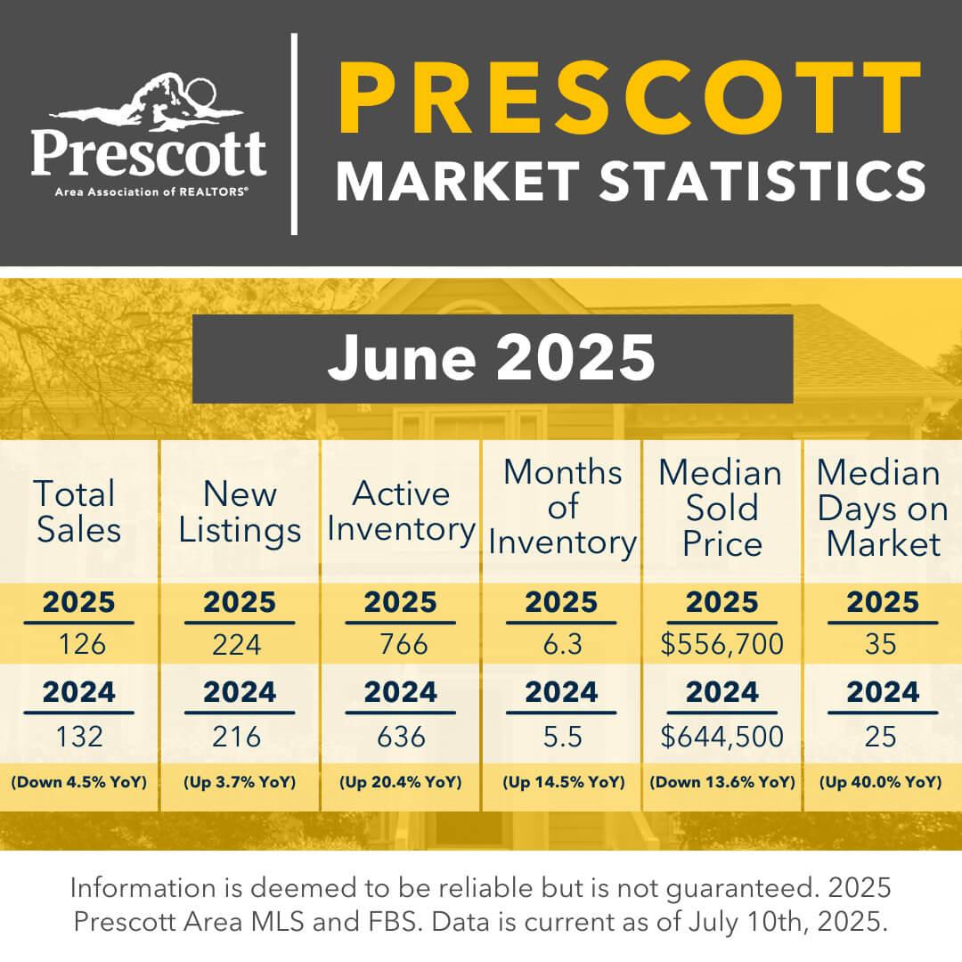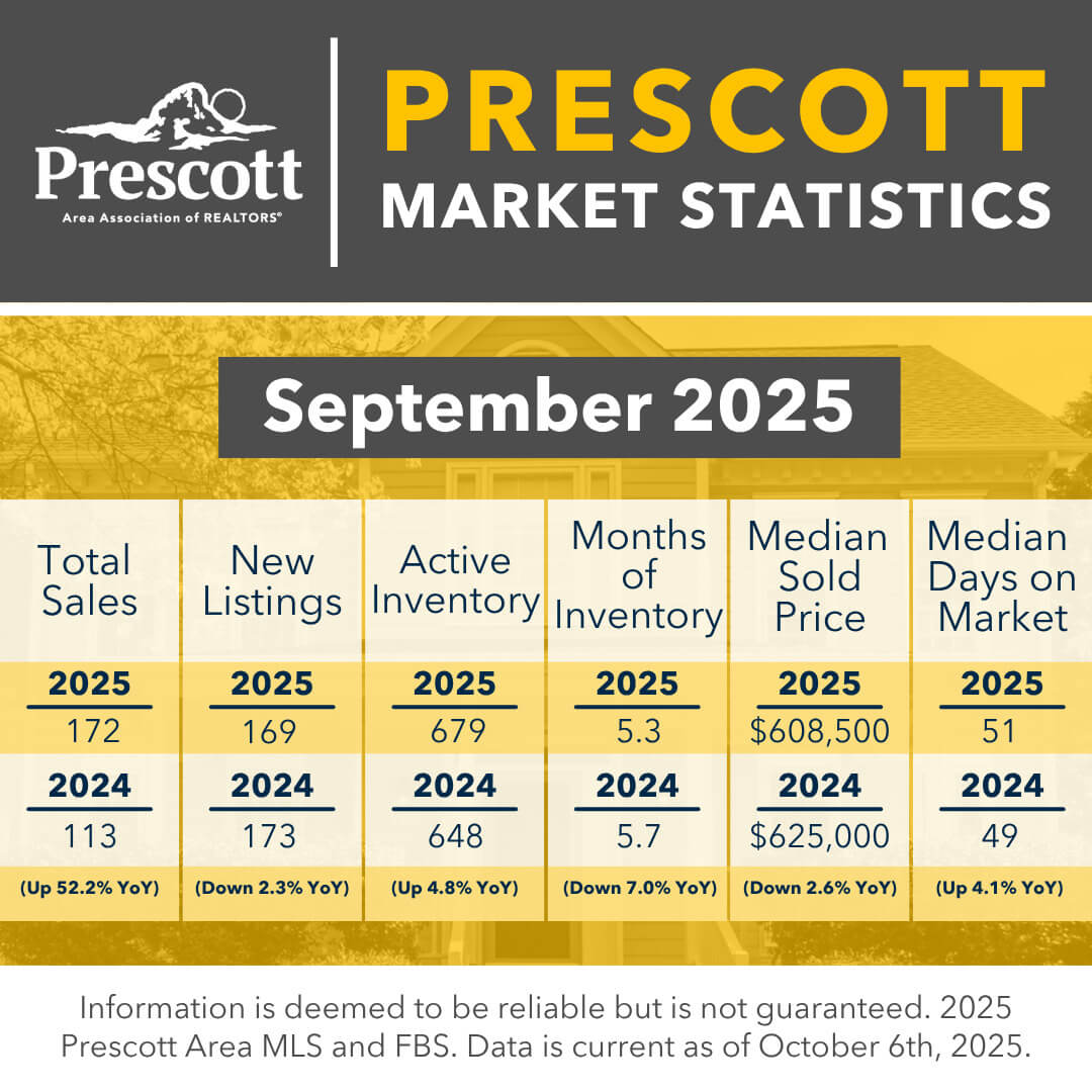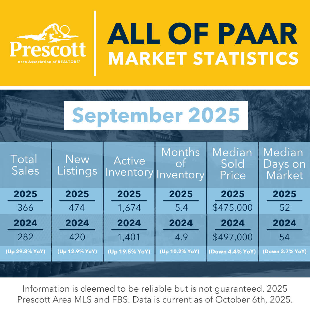 As a member benefit, the Prescott Area Association of REALTORS® provides monthly statistics to keep members informed of the latest market conditions. Our comprehensive collection of data, including shareable social media graphics, news release and customizable charts allows you to be the expert source of information for your clients.
