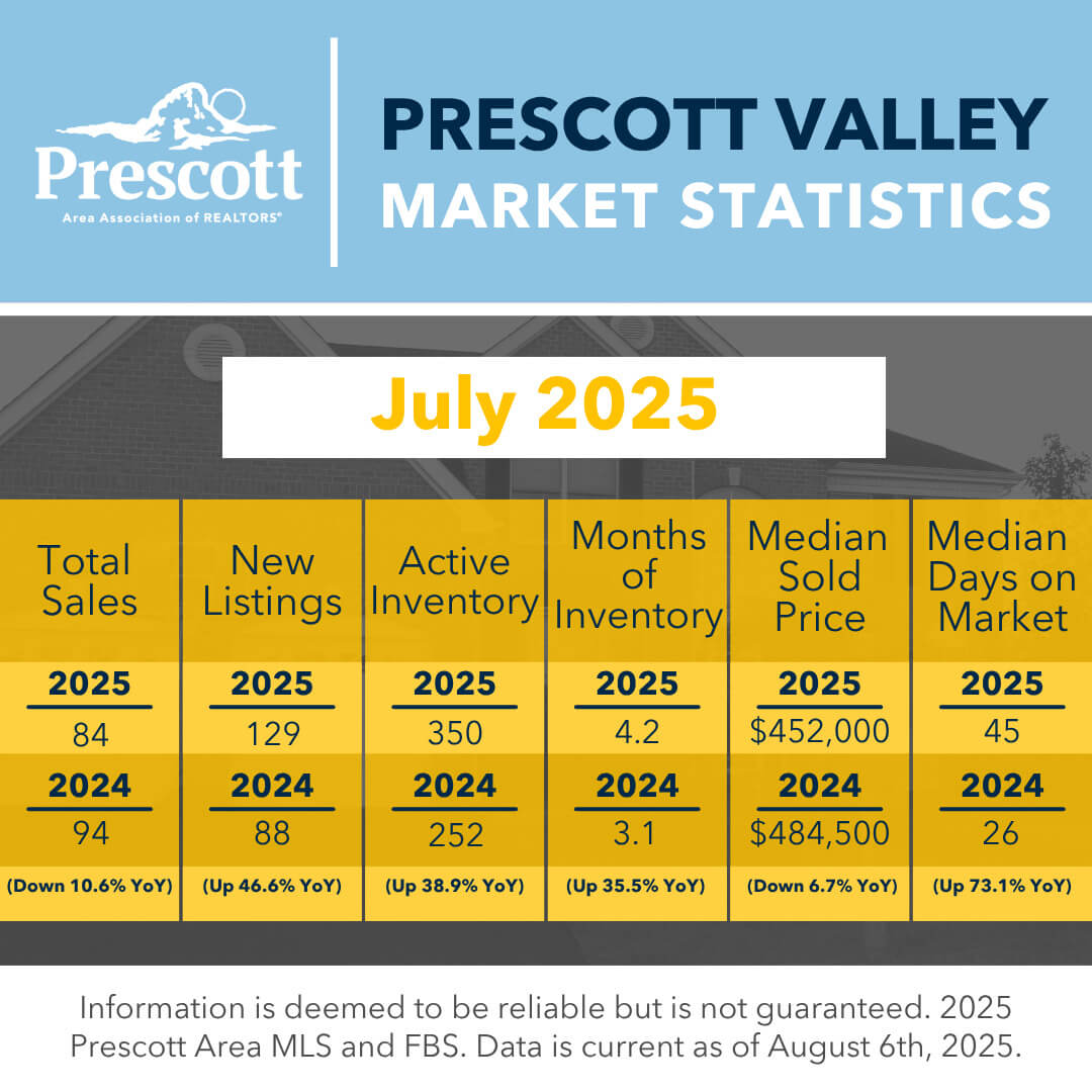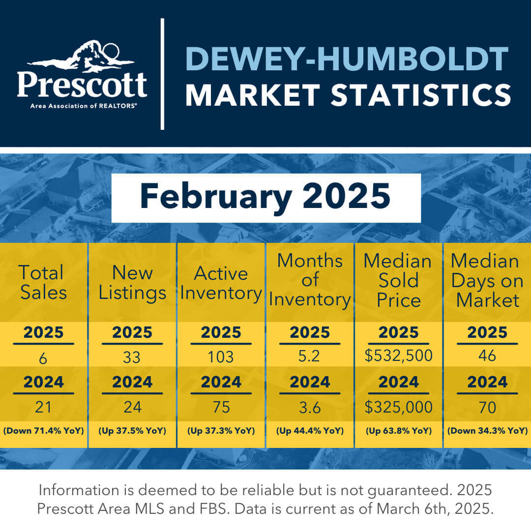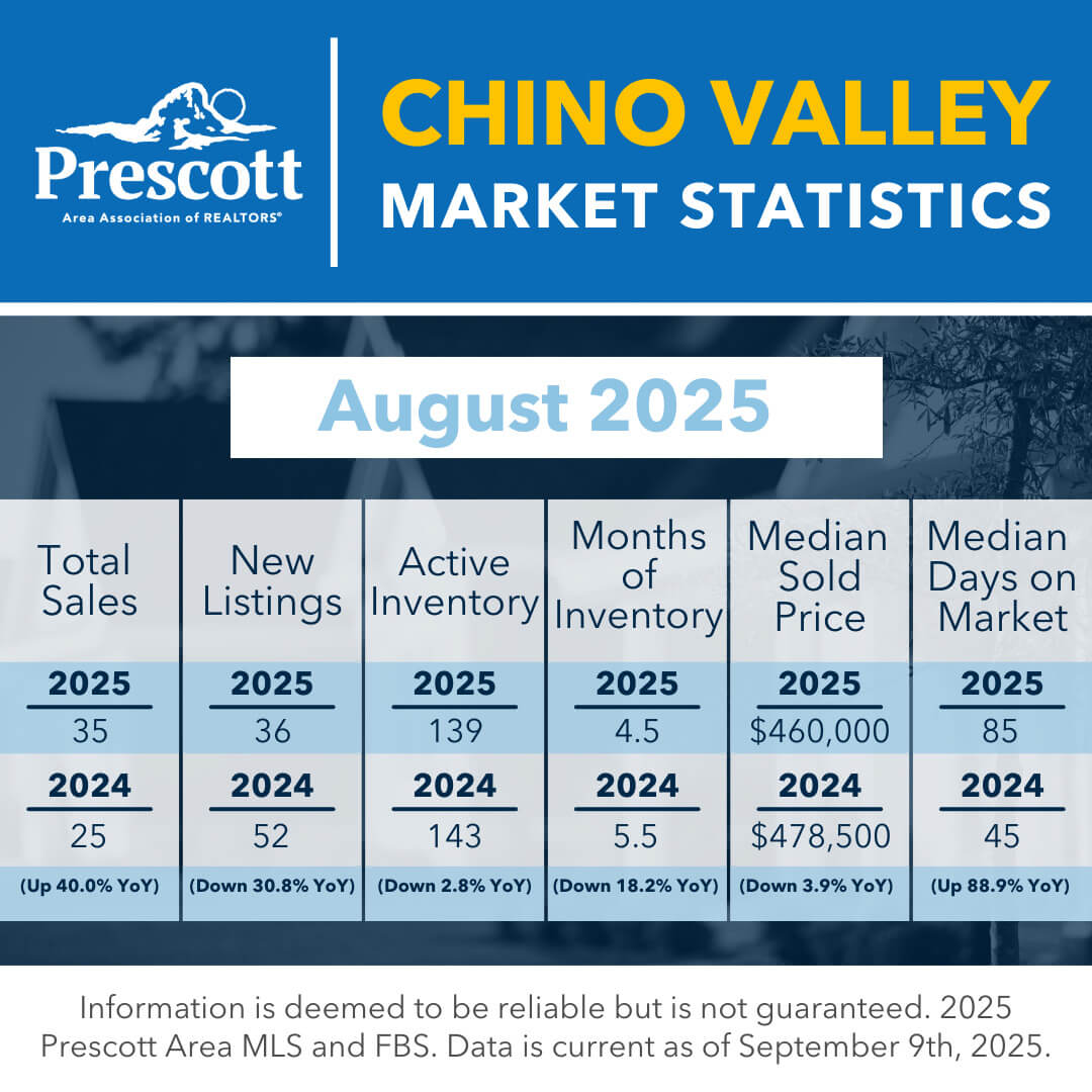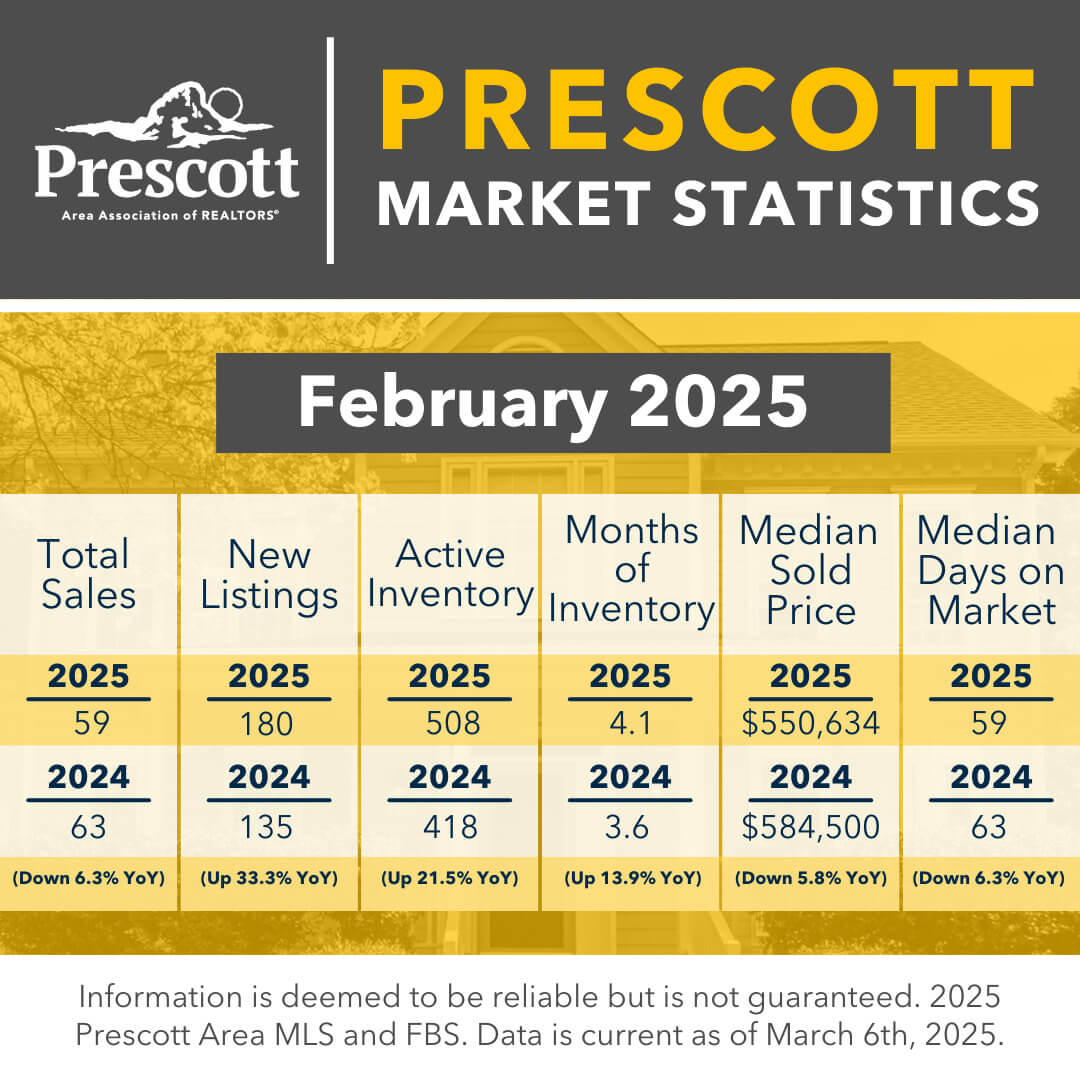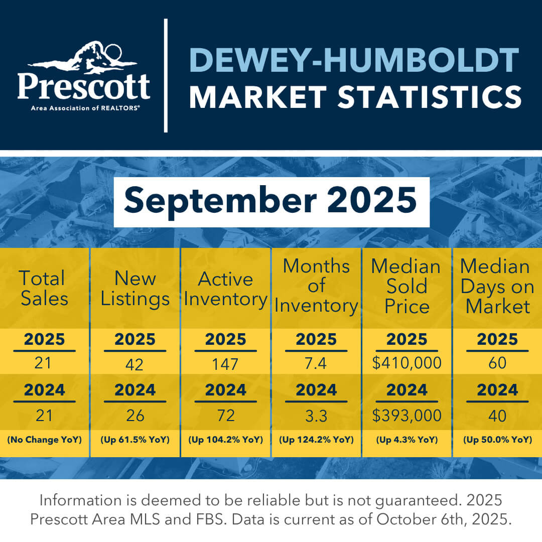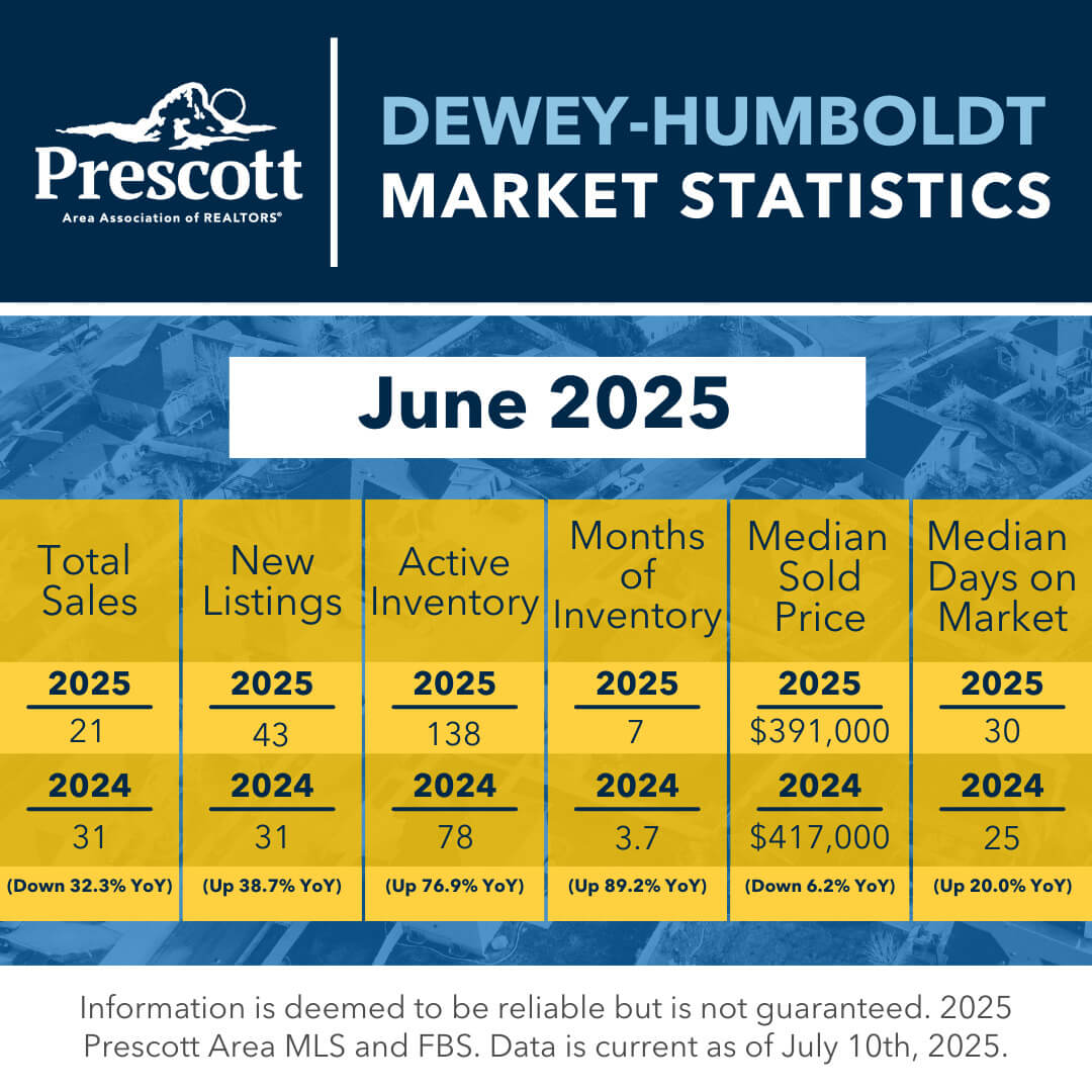 As a member benefit, the Prescott Area Association of REALTORS® provides monthly statistics to keep members informed of the latest market conditions. Our comprehensive collection of data, including shareable social media graphics, news release and customizable charts allows you to be the expert source of information for your clients.