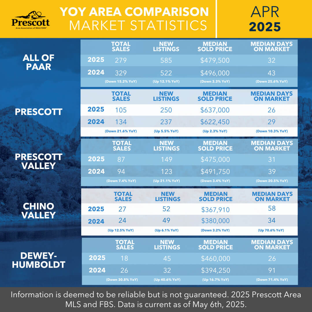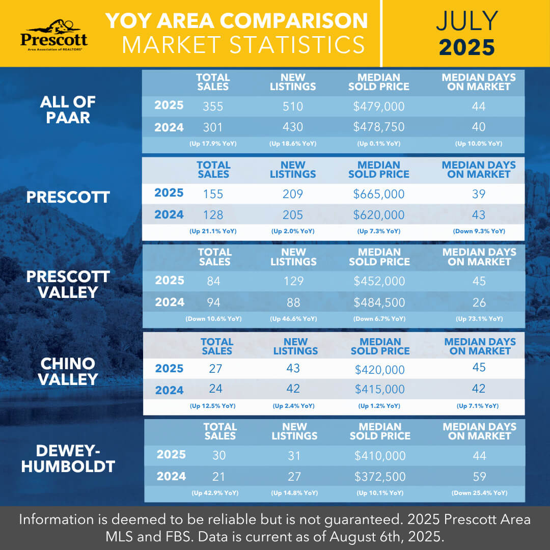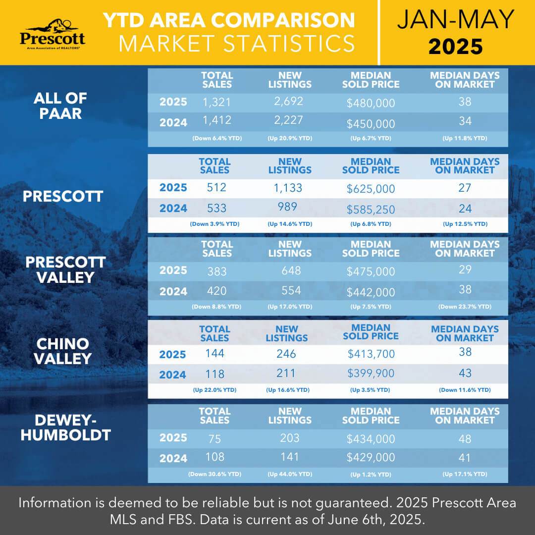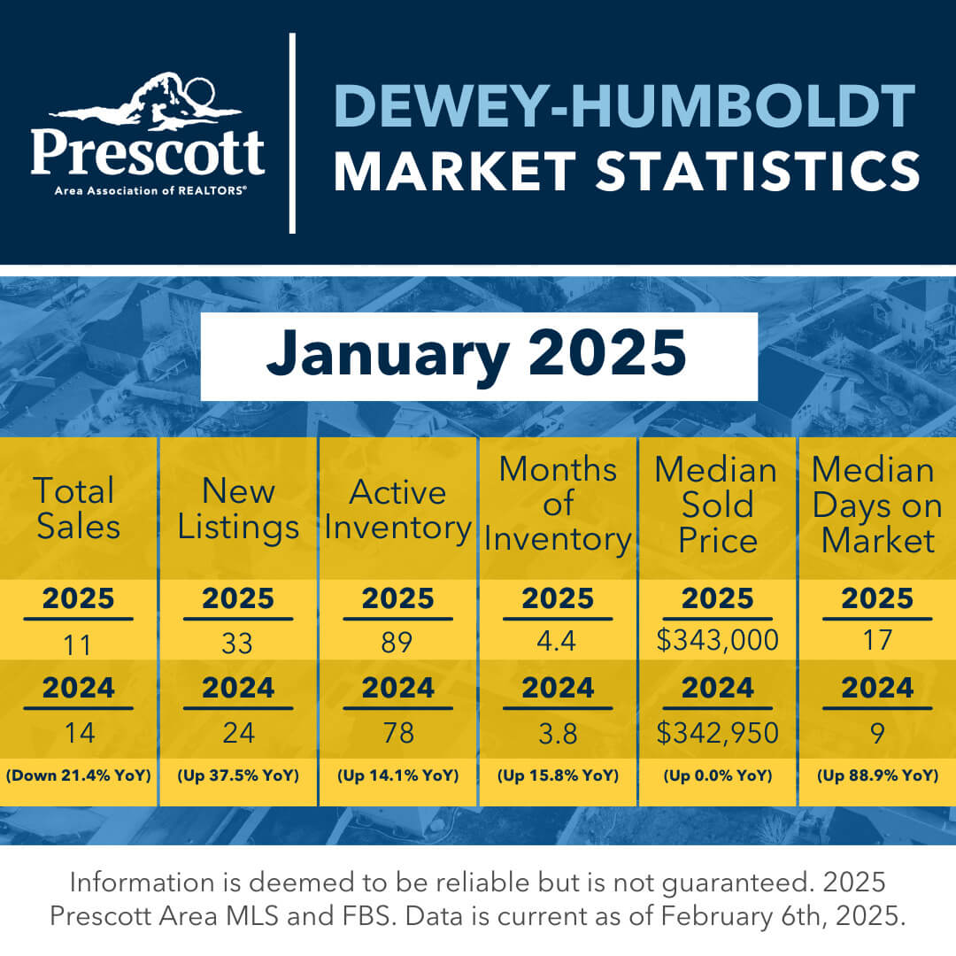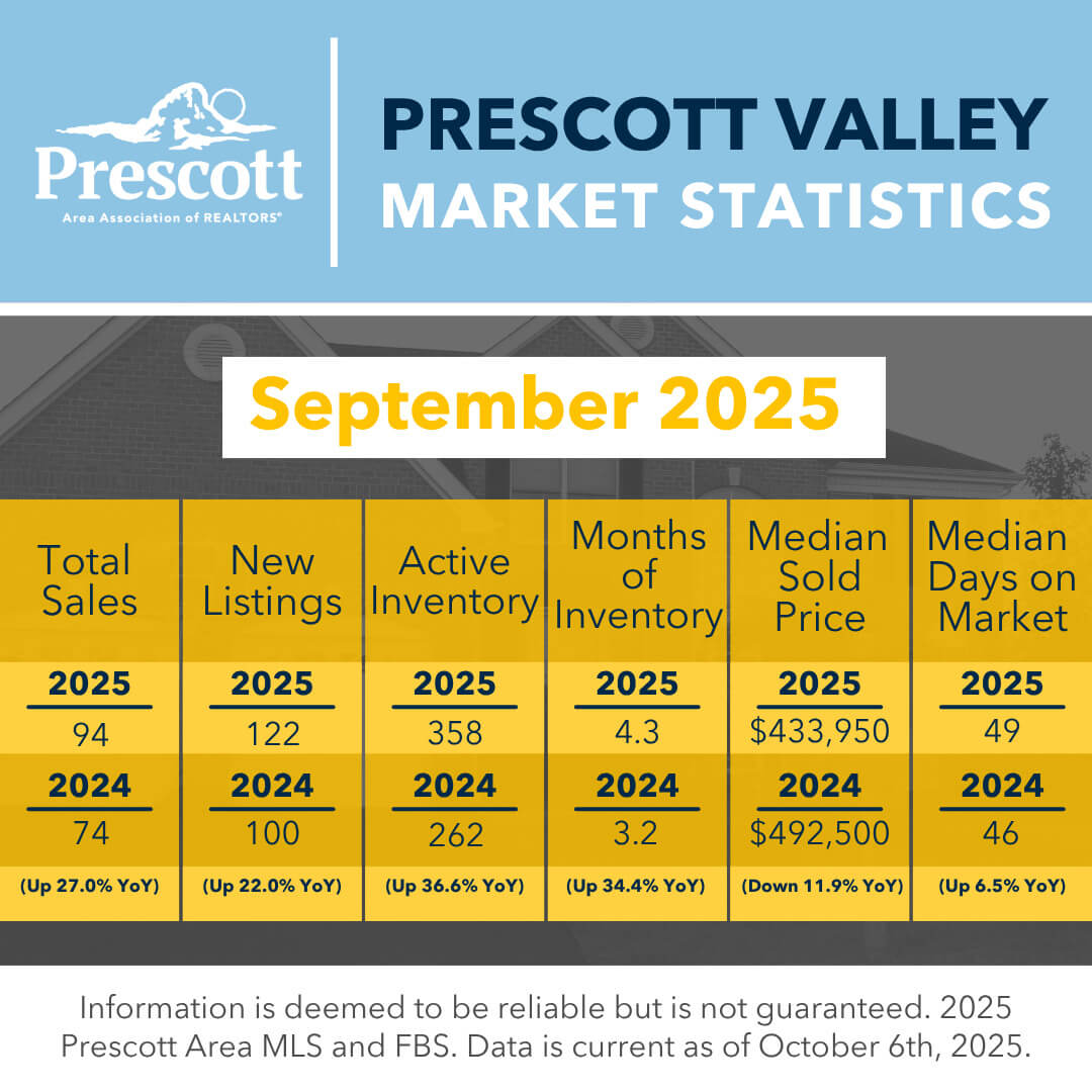 As a member benefit, the Prescott Area Association of REALTORS® provides monthly statistics to keep members informed of the latest market conditions. Our comprehensive collection of data, including shareable social media graphics, news release and customizable charts allows you to be the expert source of information for your clients.